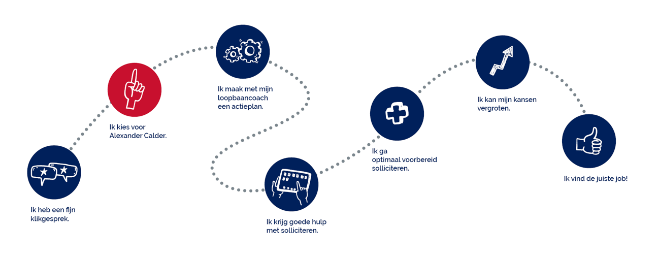 Mag je van VDAB een bemiddelingspartner uitzoeken om je verder te helpen naar een leuke, nieuwe baan? Alexander Calder is er voor jou. Met een ervaren loopbaancoach helpen we je weer aan het werk. Samen gaan we op weg naar de juiste job voor jou. Waar je kwaliteiten gewaardeerd worden en je met zekerheid en plezier aan de slag kan.